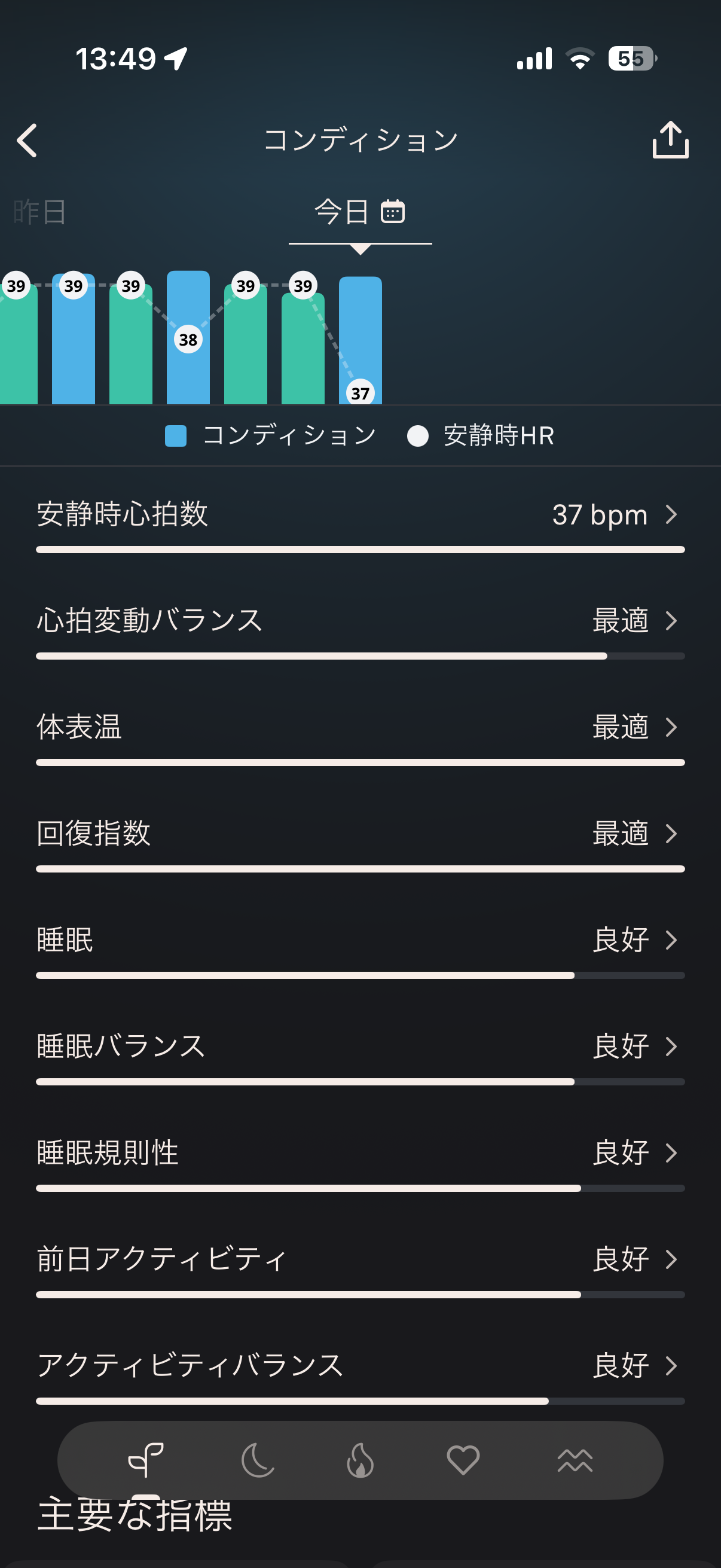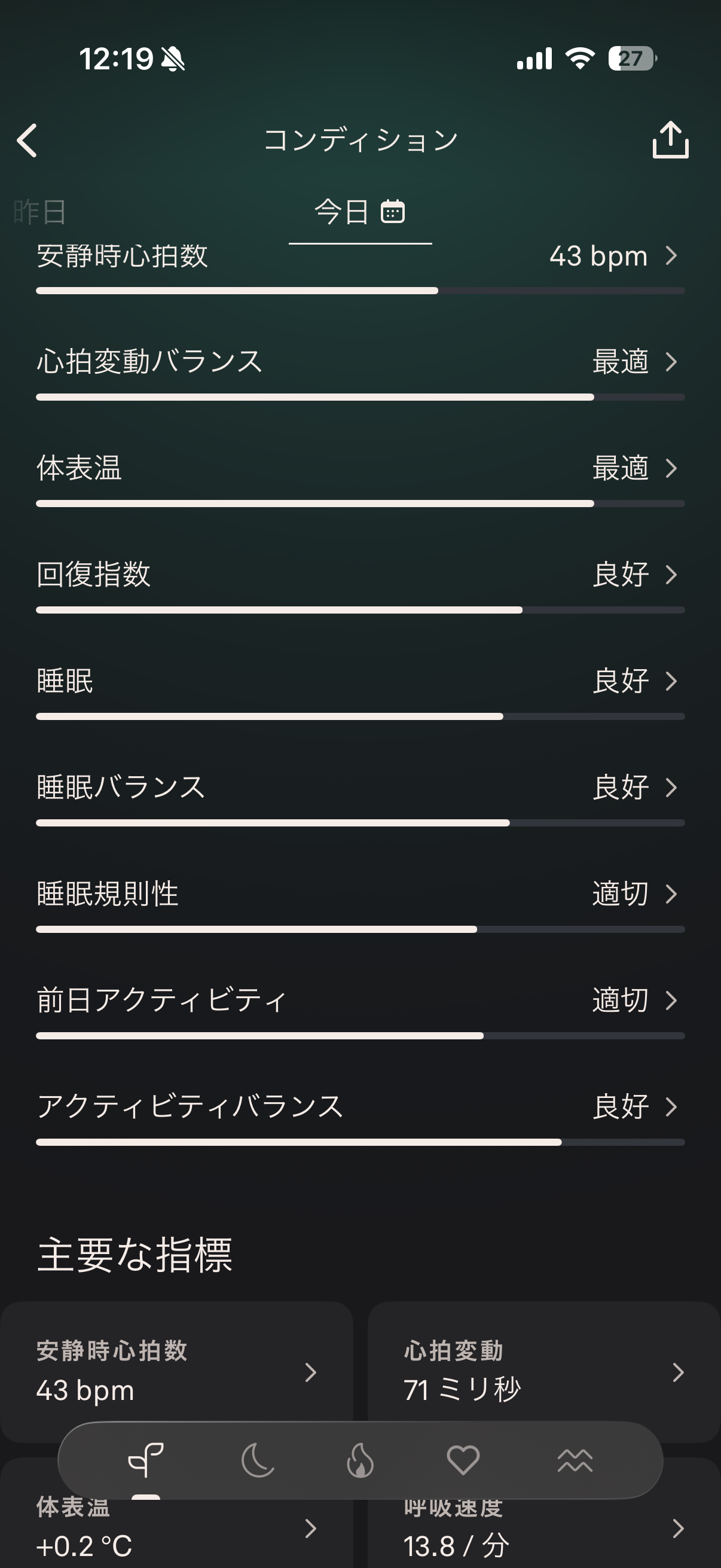 自律神経・回復の指標はかなり良い。