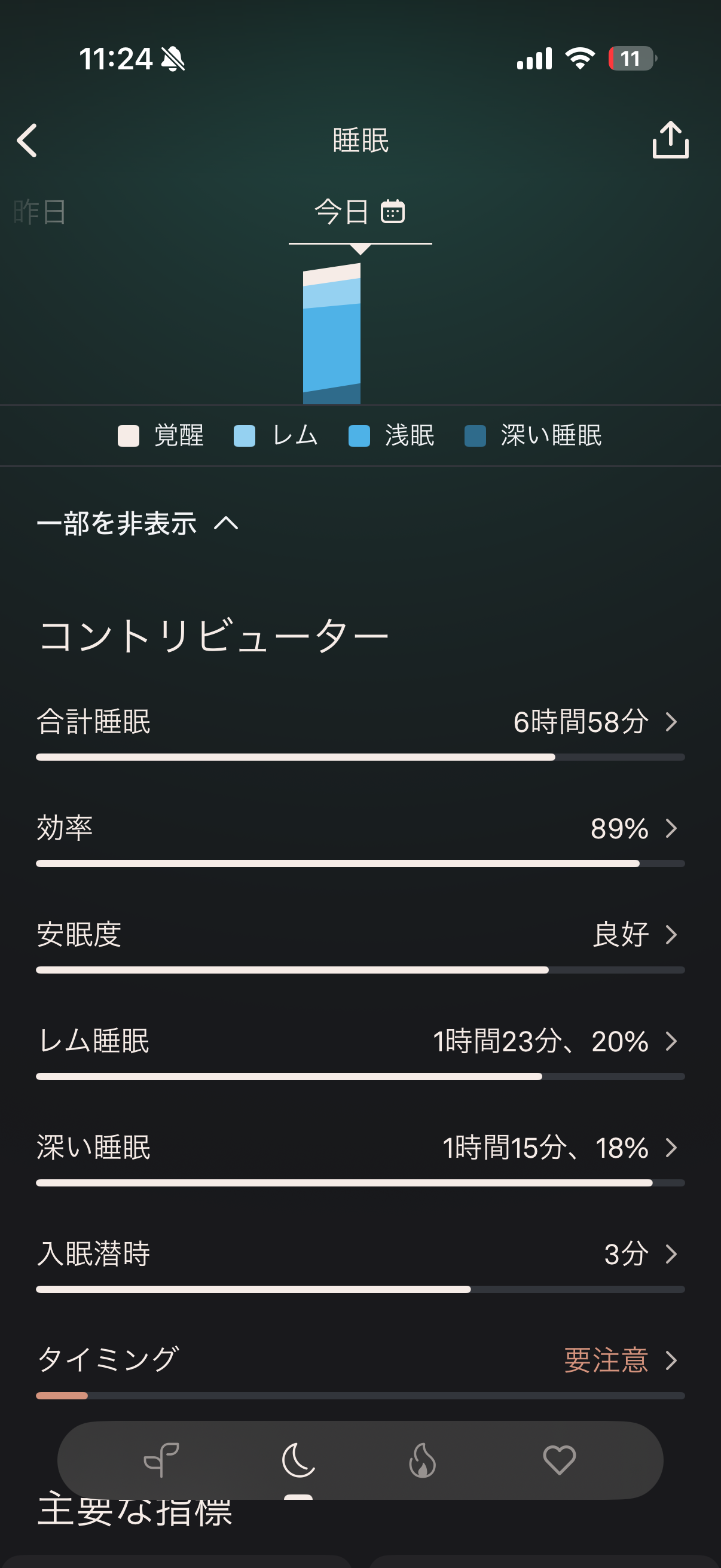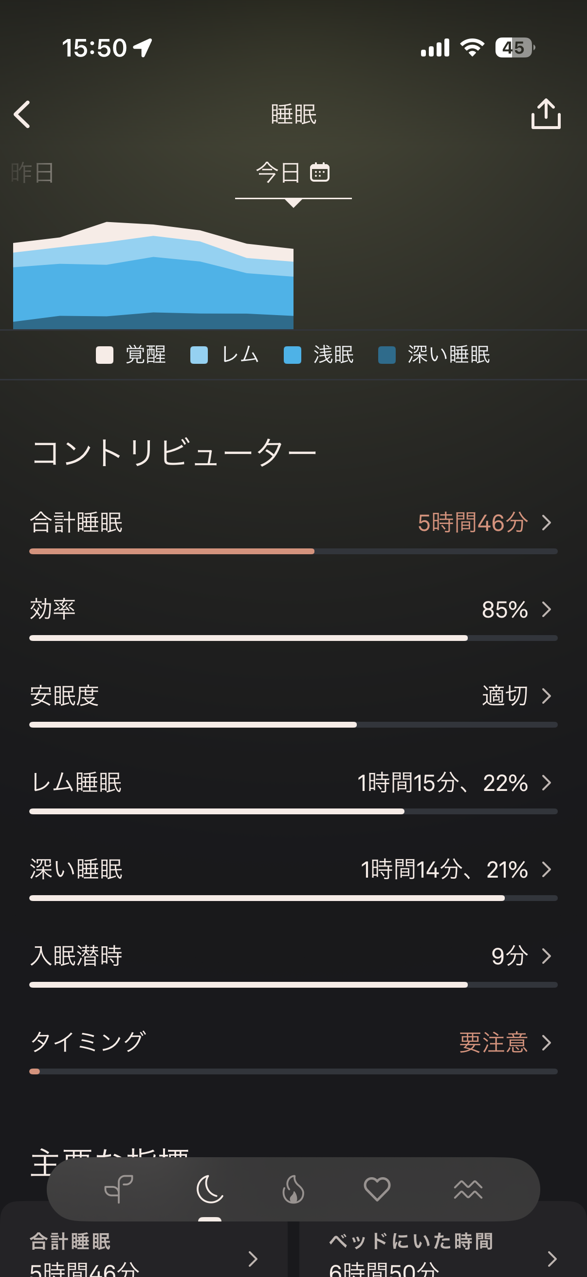 つまり、6時間12分と総時間は短め寄りでも回復に寄与しやすい睡眠段階がちゃんと取れている。