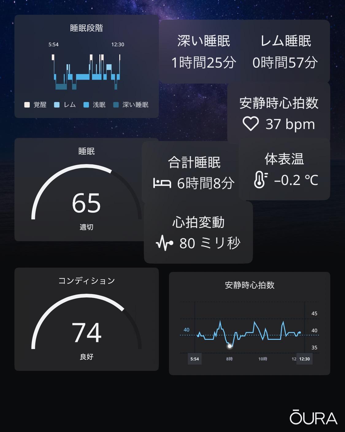 • 睡眠スコア:65(適切)