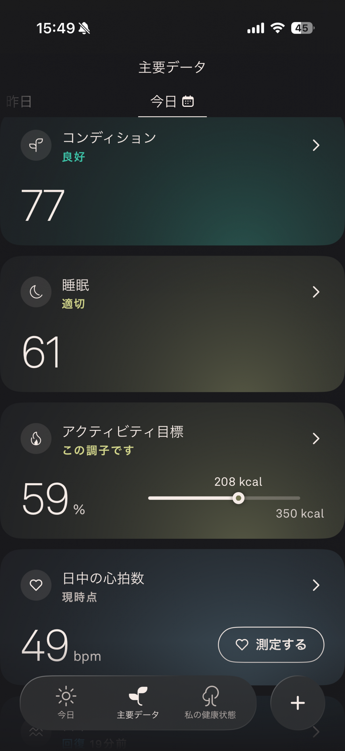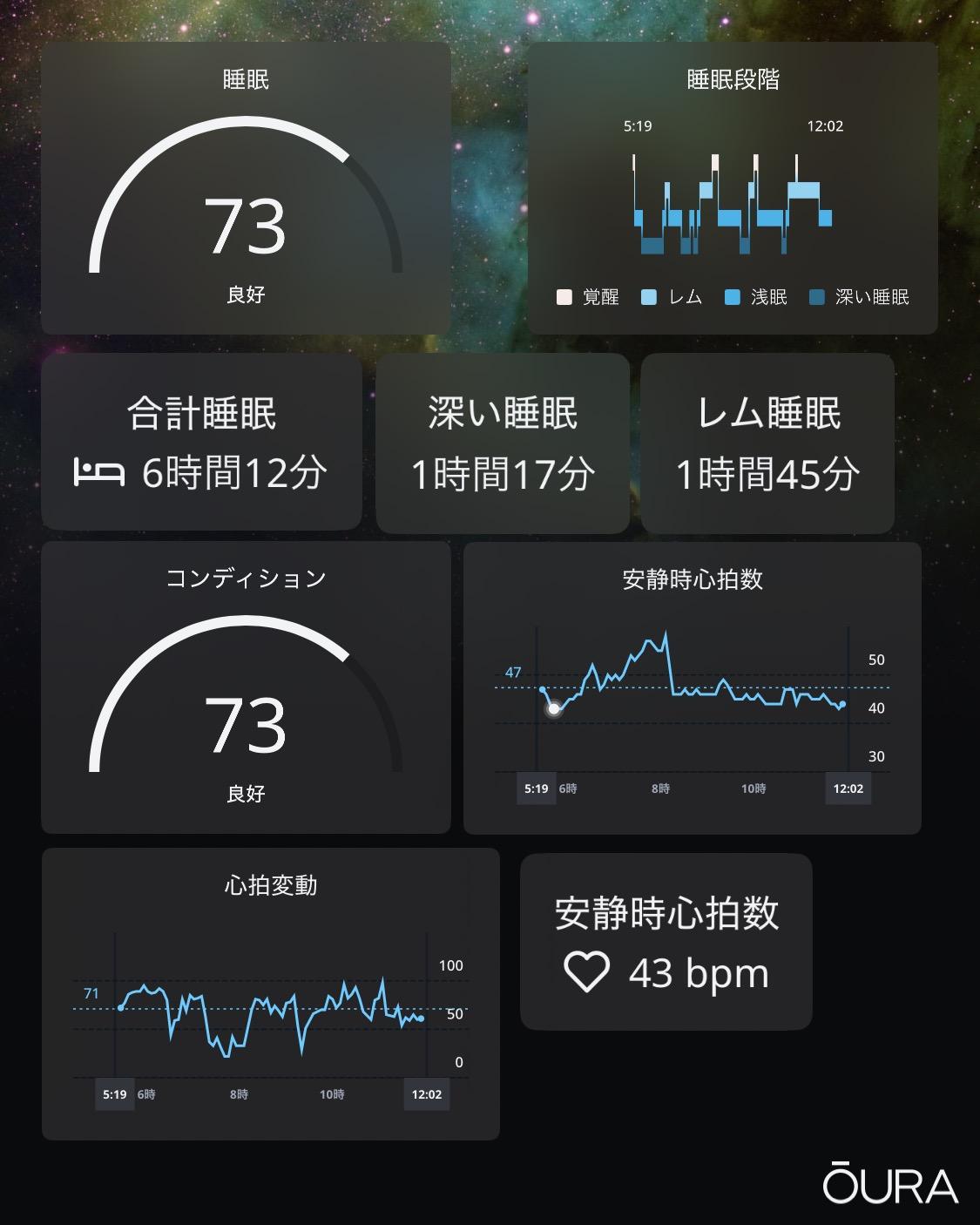 総合評価(睡眠73、コンディション73)と整合する